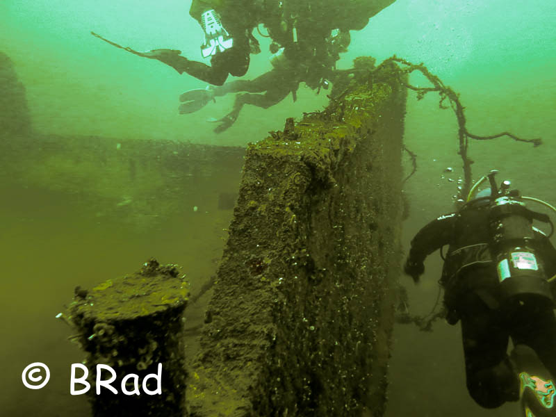 Some lunch, and we headed for the merchant ship to the right. There was another few divers that headed this way as well, and on one of the pilings was a humongous Lions Main Jellies just hanging around. After what seemed like an hour, we found the ship slightly deeper than we thought, and started exploring.